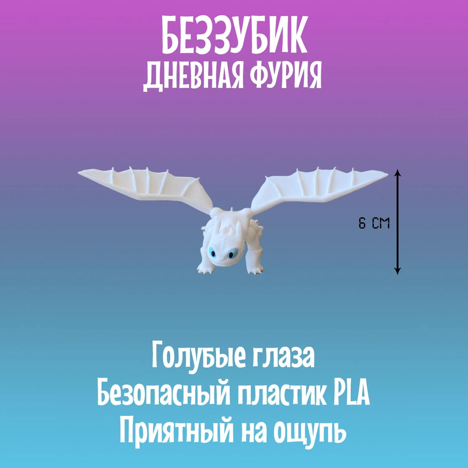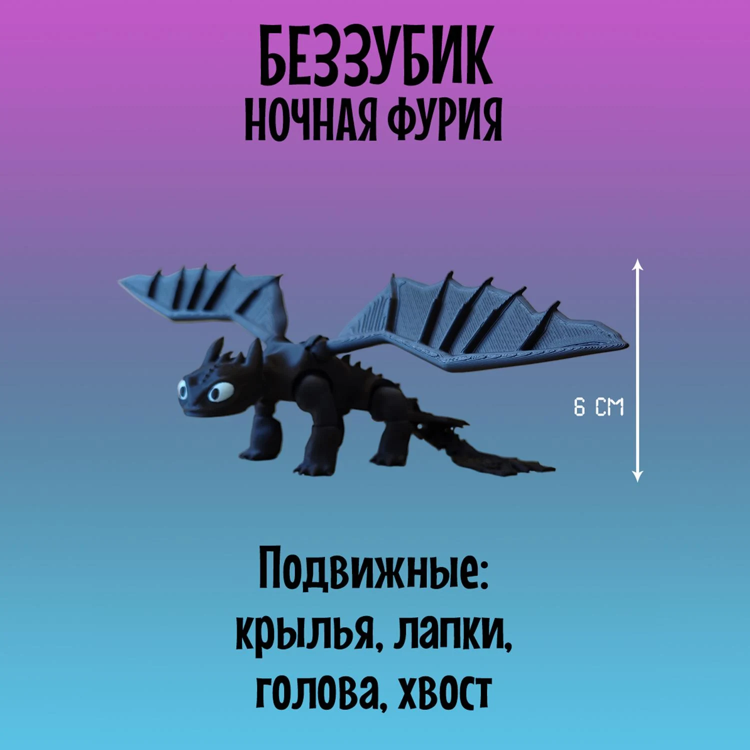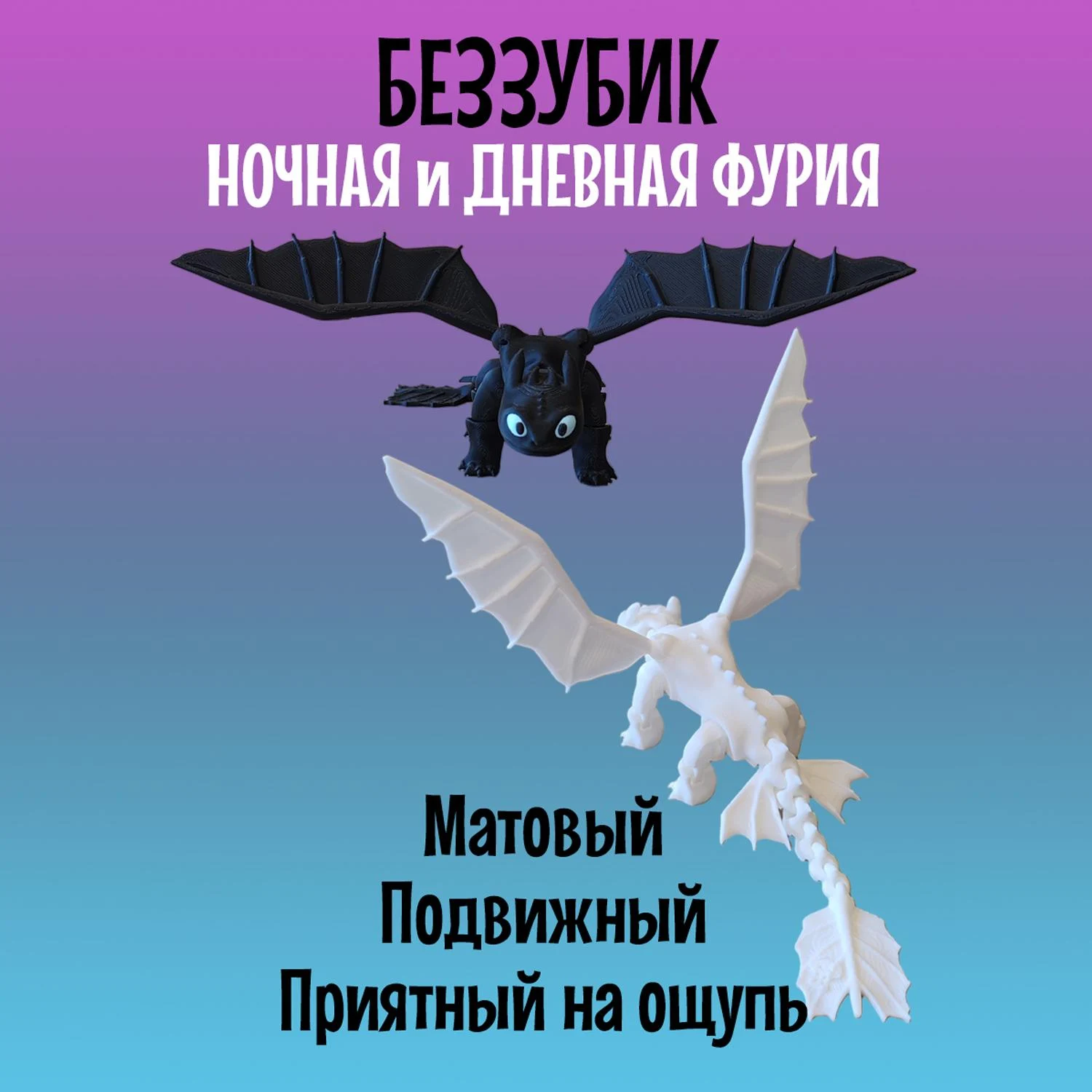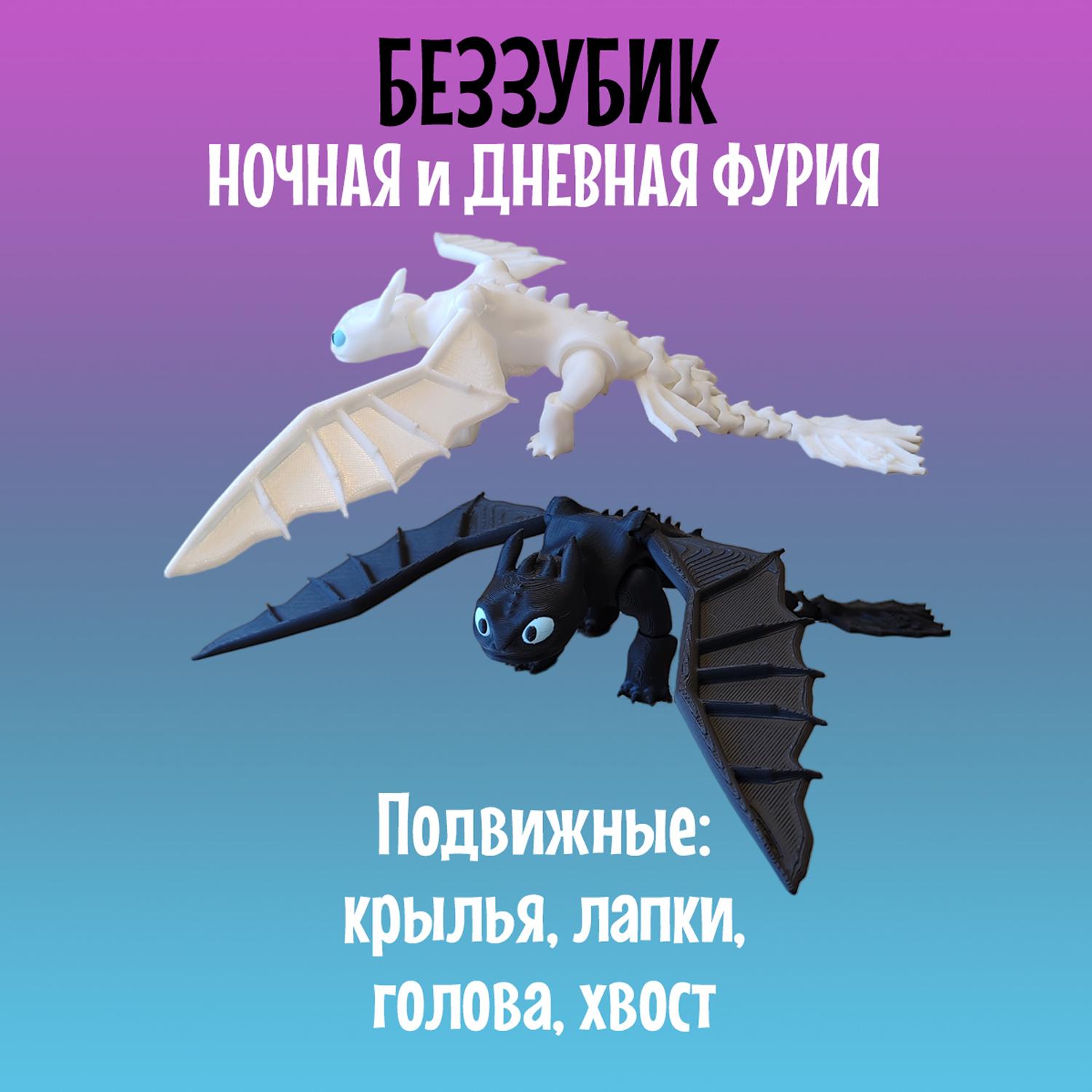Легендарный Дракон Дневная фурия и Ночная Фурия из мультфильма Как приручить Дракона станет приятным подарком как для детей, так и для взрослых. Дракон 3д создана с использованием 3D-печати и отличается реалистичным дизайном и высокой подвижностью элементов: голова, лапы и хвост-полностью подвижный и тактильный, а съёмные крылья имеют шарнирные крепления, что позволяет размещать их в самых разных позициях, создавая эффект реалистичных движений. Дракон игрушка Дневная фурия и Ночная Фурия имеет удобные размеры: 21см в длину и размах крыльев 27см, в высоту стоя на лапах 6см. Выполнена с использованием многоцветной печати из безопасного и экологичного PLA-пластика, который изготовлен из кукурузы и сахарного тростника. Игрушка Дракон идеально подходит для украшения интерьера, настольного аксессуара, коллекционирования, а так же для игр детей старше 5 лет. Дракон 3д подвижный не боится воды, так как все детали в том числе и голубые глаза напечатаны из пластика и не сотрутся и не потускнеют со временем. Подвижная игрушка антистресс надёжно и бережно упакована в защитную плёнку и в индивидуальную картонную коробку, что отлично подойдёт для подарка. Дракон фигурка вас приятно удивит своим качеством и исполнением деталей. Приобретая нашу игрушку Дневная фурия и Ночная фурия, Вы точно останетесь довольны, ведь это Как приручить дракона игрушка! Так же Драконы можно приобрести вместе. В каждой коробке есть подарок-сюрприз.