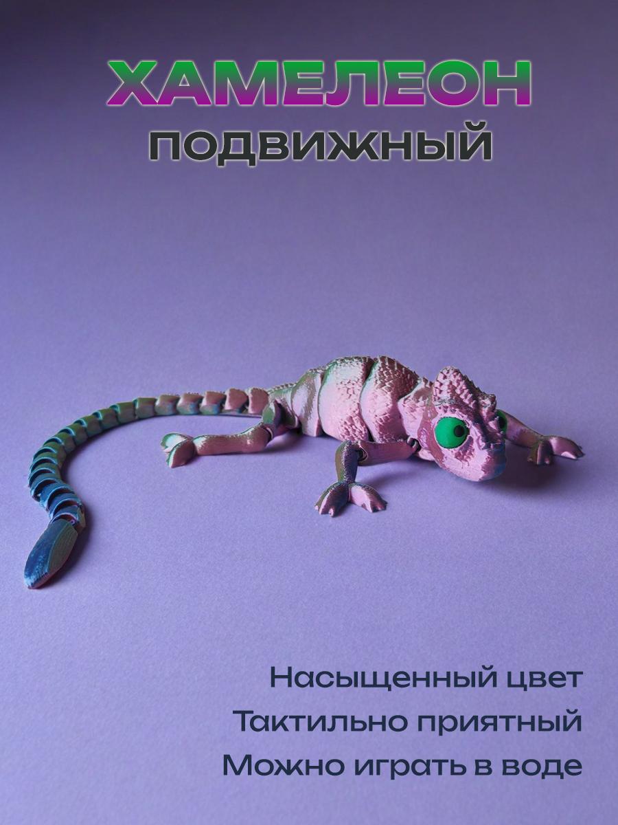 Два хамелеона, как будто придуманы специально, чтобы лежать рядом. Первый — вытянутый и утончённый, с длинным, гибким хвостом. Его форма словно тянется вдоль ладони, приятно скользит под пальцами. Линии корпуса мягкие, обтекаемые, каждая чешуйка и изгиб ощущаются тактильно, будто это маленькая живая фигурка, застылая в момент движения. Второй — основательный толстячок, с округлым телом и массивным пузиком. Его хочется вертеть в руках: он плотный, весомый на ощупь, с выразительными формами. За счёт объёма он кажется особенно уютным и дружелюбным. Оба хамелеона выполнены из PLA‑пластика с насыщенным, глубоким цветом — поверхность ровная, приятная, слегка шелковистая. В паре они создают идеальный баланс: один — грациозный и изящный, другой — тёплый и приземлённый. Вместе они тактильно дополняют друг друга и образуют цельную, гармоничную композицию. Подвижные игрушки антистресс надёжно и бережно упакованы в защитную плёнку и в индивидуальную картонную коробку, что отлично подойдёт для подарка.